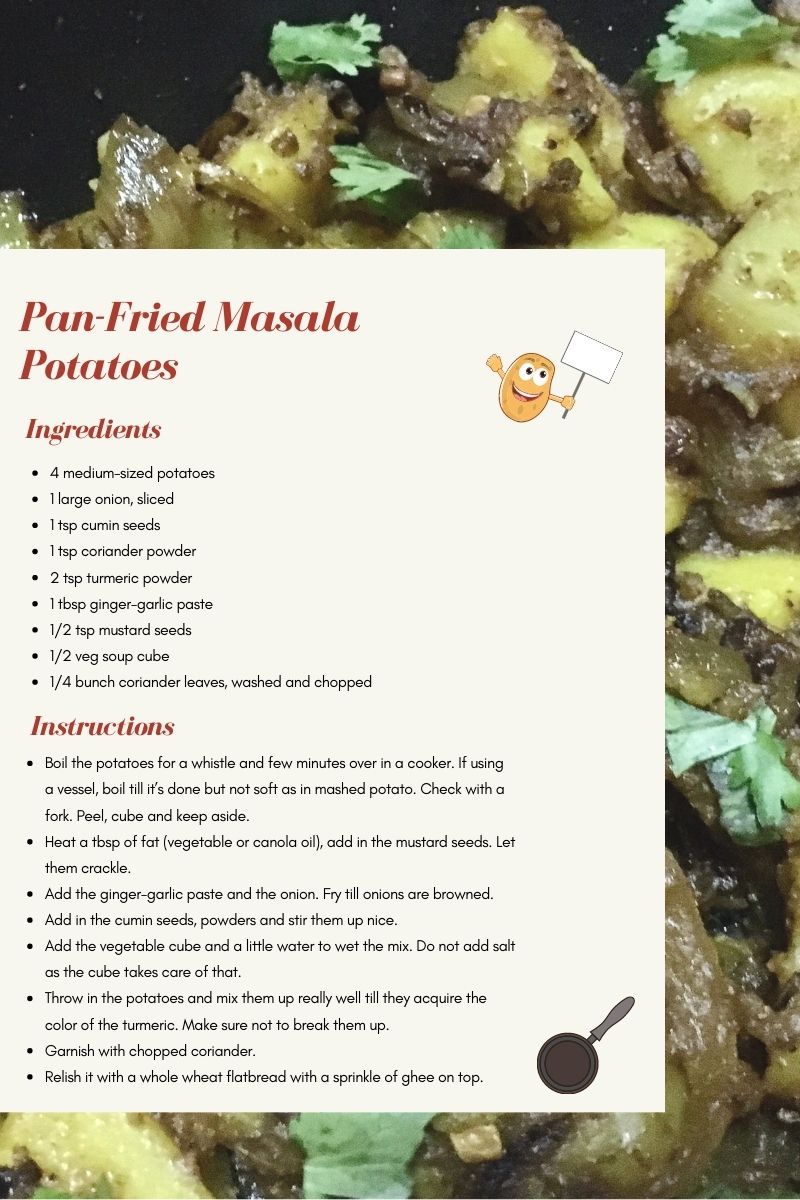 menu Pan-Fried Masala Potatoes Pan-fried masala potatoes. Date: September 9, 2020Author: Lyle Michael