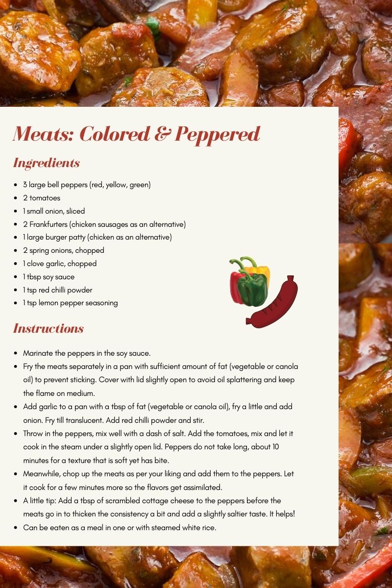 menu Meats: Colored & Peppered Sausages & Peppers in Tomato Sauce Date: November 12, 2020Author: Lyle Michael