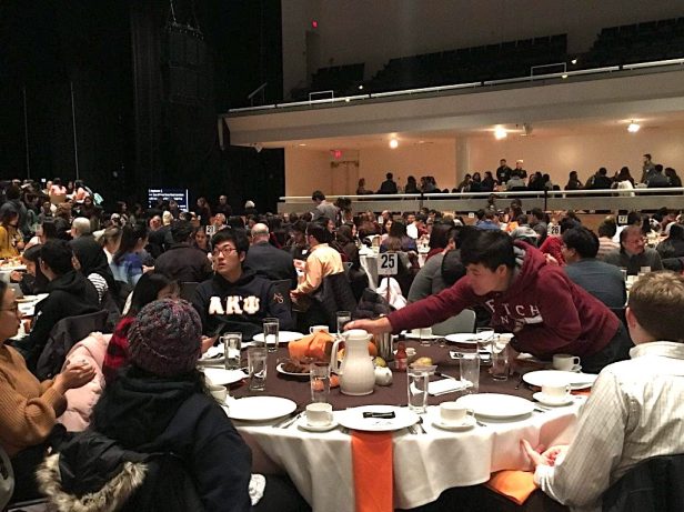 For many of the international students at Bartholomew’s table and hundreds more from 80 different countries who gathered in Goldstein Auditorium, the Thursday evening meal was their proper introduction to a feast of food traditionally served for the American holiday.