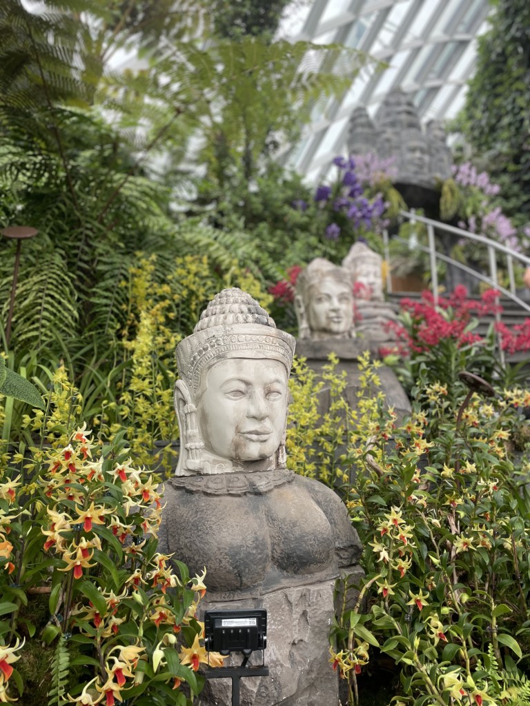 There is heavy emphasis on seafood in Singapore and meats like beef and pork. For a vegetarian, it is not the best place to be, fact’s a fact! So after some juicy oyster omelette, popiah (spring roll with turnip, diced boiled eggs, bean sprouts), the famed Fish & Peanut Porridge, steaming hot sui mai, rice cakes with fish sauce and strong black coffee, I was off to indulge in some green therapy at Gardens by the Bay. Not something you can afford to miss, even if nature is not your thing! Then again, how could it not be!